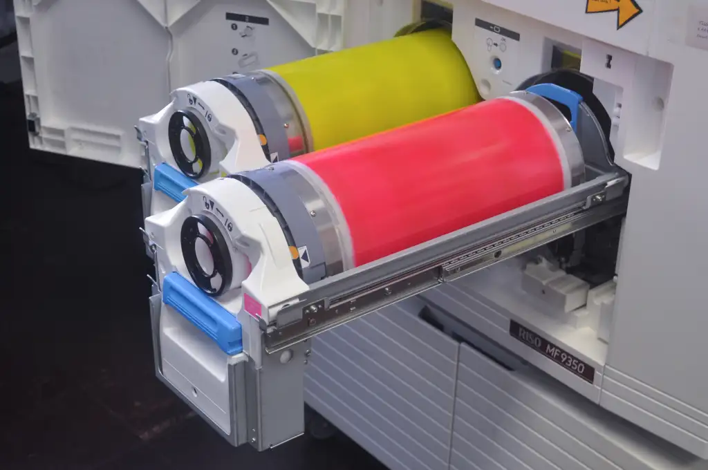 Der Riso zeichnet sich durch seine besonderen, leuchtstarken Farben aus. Momentan kann man bei uns mit folgenden Farben drucken: Schwarz, Blau, Marine Blau, Gelb, Rot, Teal, fluoreszierend Orange und Pink. Das Farbangebot soll sich stetig erweitern deswegen bei der Drucktermin Vereinbarung gerne noch mal über die aktuellen Farben informieren.